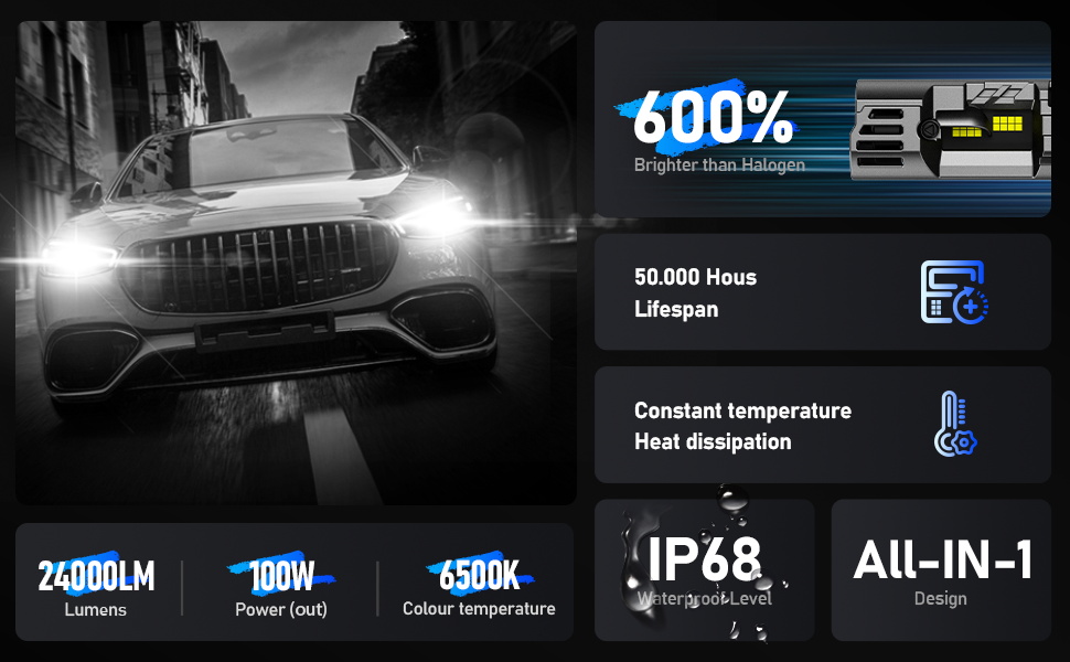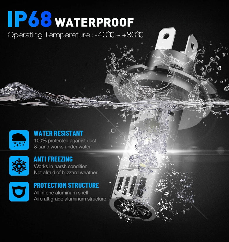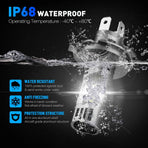 - IP68 Waterproof & Extreme Temperature Performance: Rated IP68 waterproof, these headlights are fully protected against dust and able to operate even under water. With a wide operational temperature range from -40°C to +80°C, they perform reliably in extreme weather conditions, including rain, snow, and intense heat.