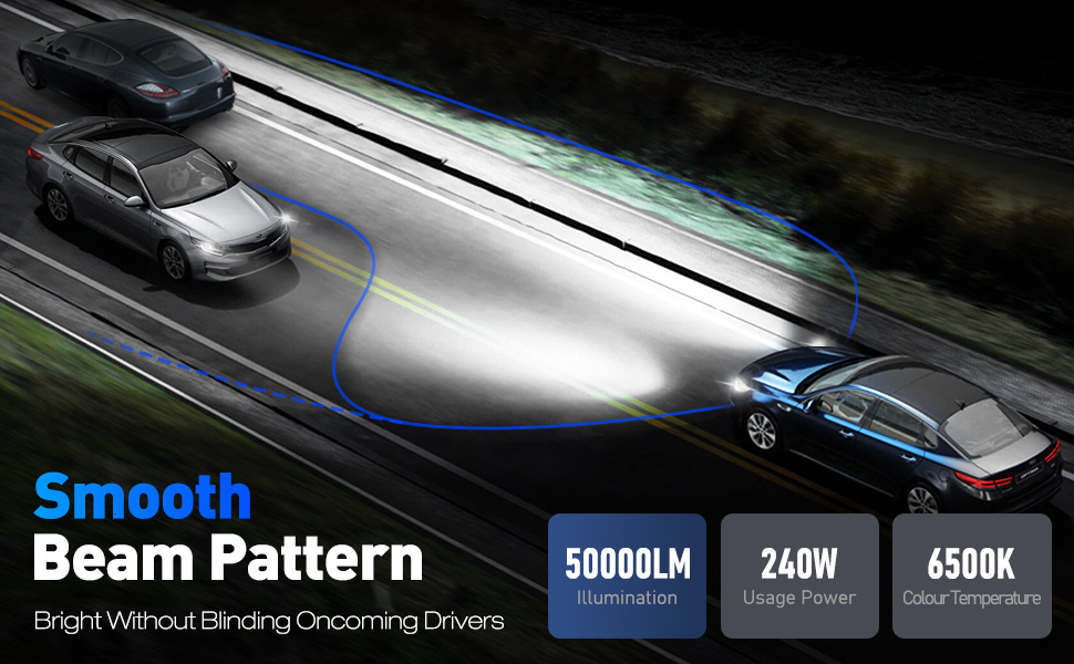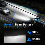 Optimized smooth beam design ensures a focused and evenly spread light without blinding oncoming drivers. The 1200ft visible distance improves road safety during nighttime and adverse weather.