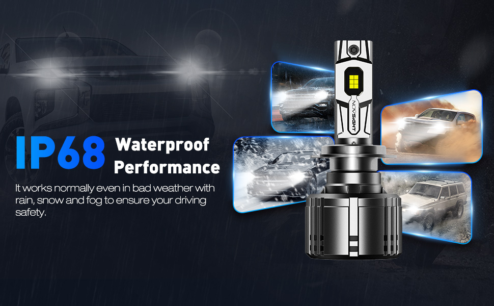 With an IP68 rating, these headlights are engineered to withstand harsh weather elements like rain, snow, or dust, ensuring reliable performance in all environments.