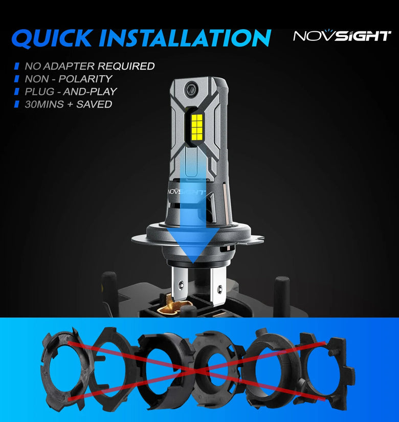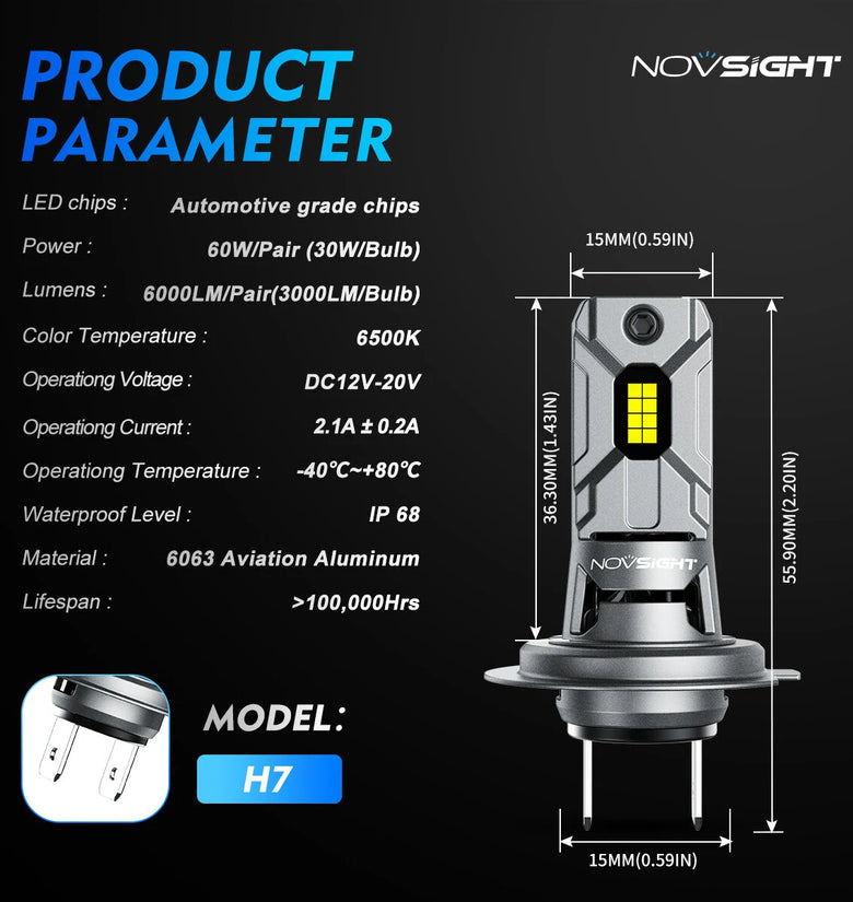 -- H7 Socket Compatibility: These LED bulbs are designed to fit the H7 socket type. This makes them compatible with a wide range of vehicle models and ensures easy installation without the need for any modifications or additional wiring.