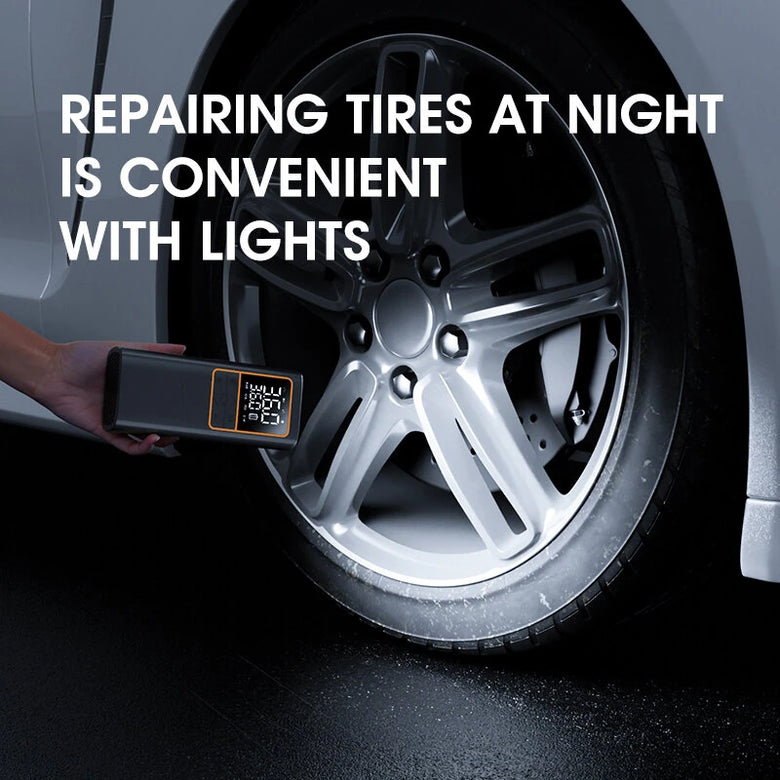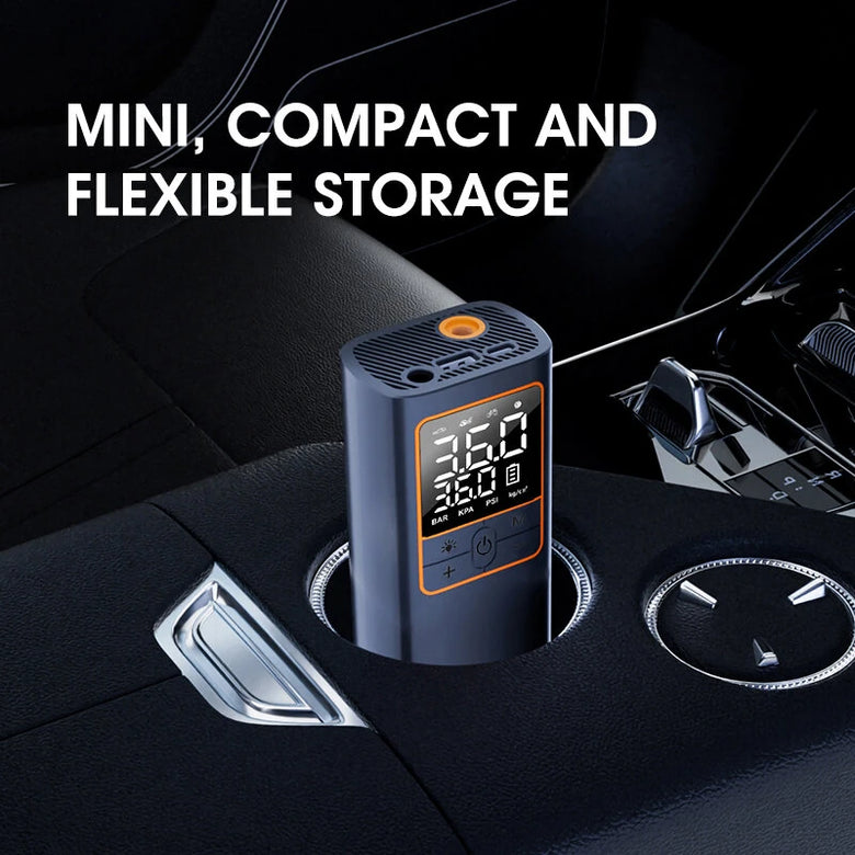 The cordless car air pump features a dual digital display that provides real-time, accurate pressure readings up to 150 PSI. Users can set and monitor the pressure in their preferred units by switching units (Bar, Psi, Kpa, Kg/cm²), ensuring precise and customized inflation for different needs.