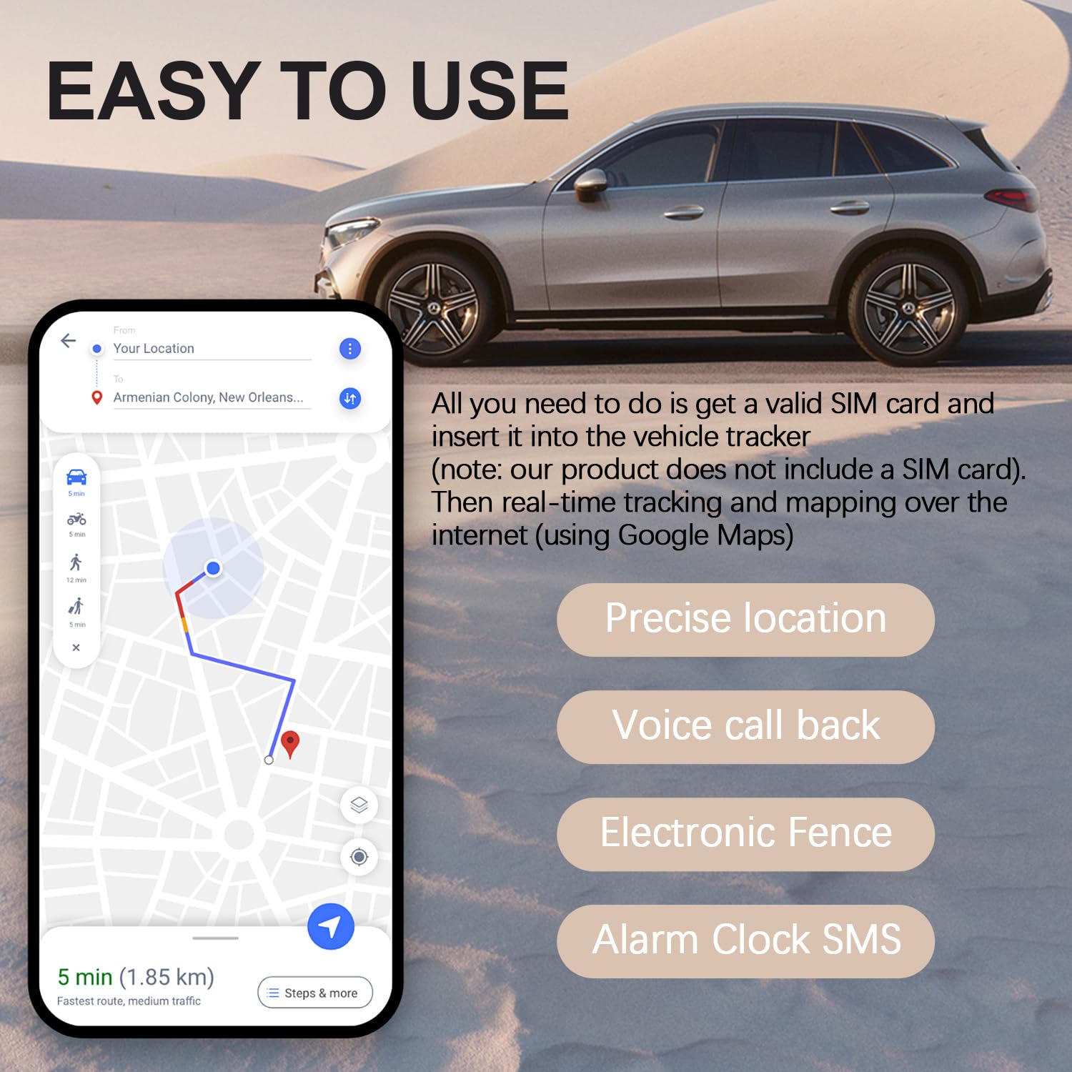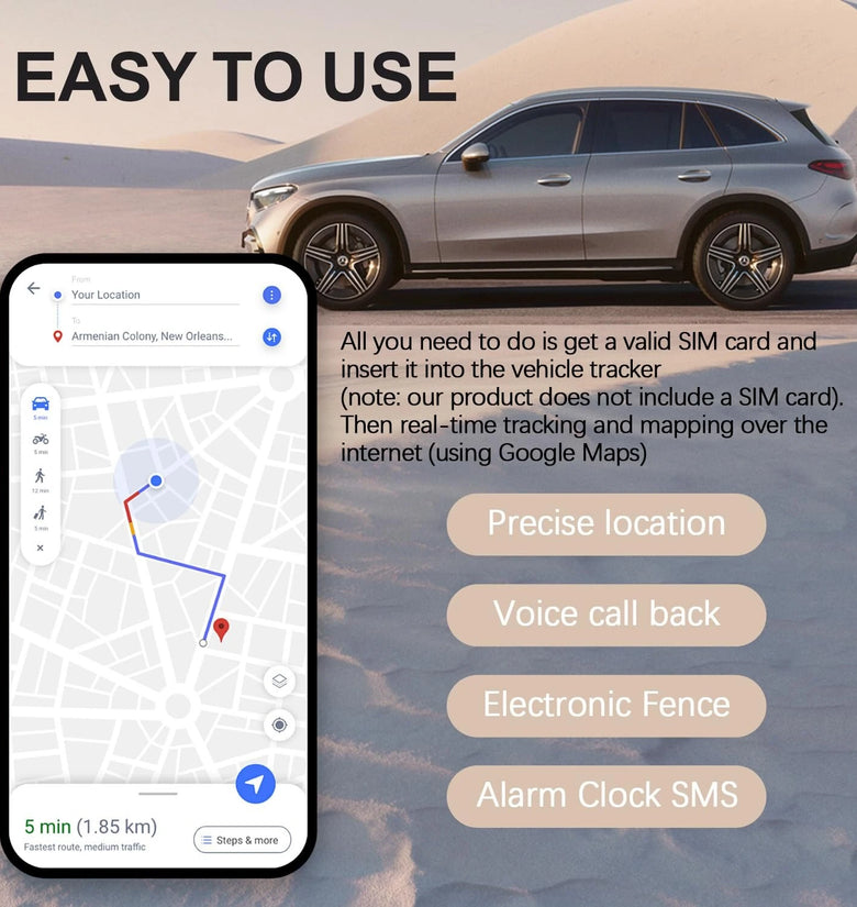 - Simplified Installation Process: Just insert a compatible SIM card into the device, place it in your intended location, and begin monitoring through the app. Tailor update intervals based on your specific tracking requirements.