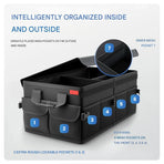 1. Enhanced Organisation: Designed with three main compartments and multiple exterior pockets, this organiser provides optimal storage capacity, ensuring all items are stored neatly and systematically.