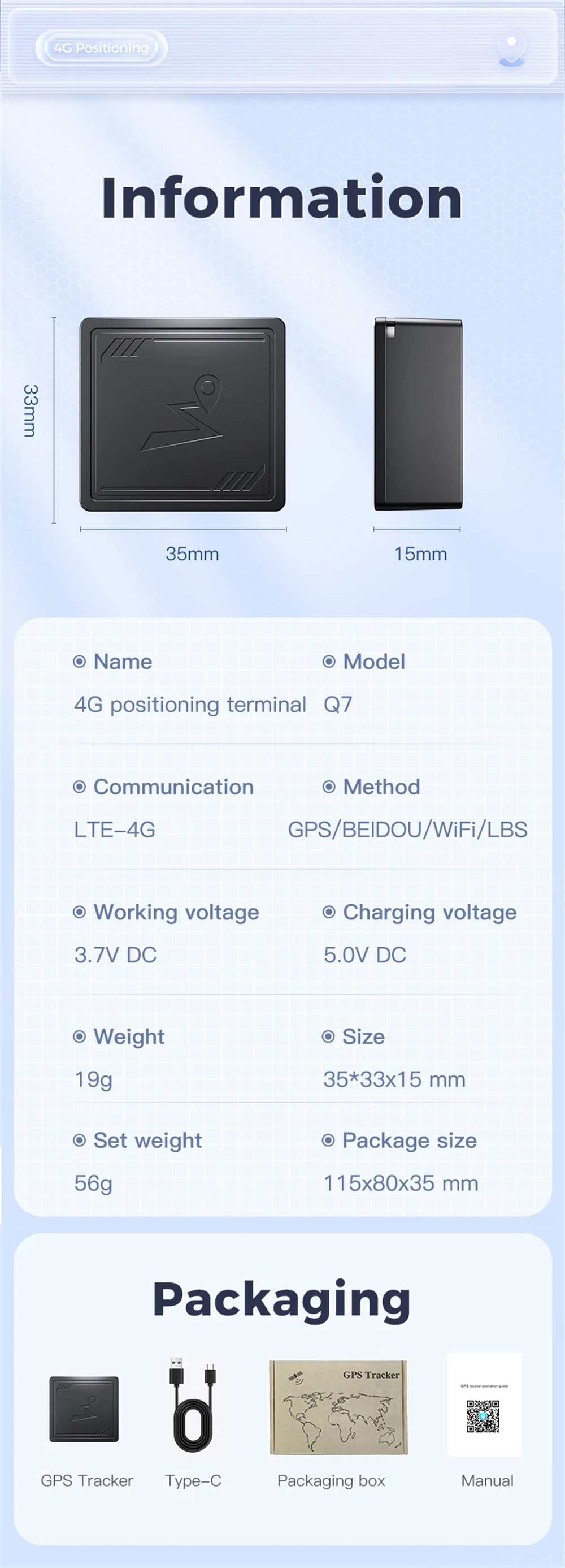 • Q7 4G GPS Locator Smart Positioning Terminal with App Real Time Car Tracking Device Anti-Lost Recording Tracking Device for Elderly Children Pets Car