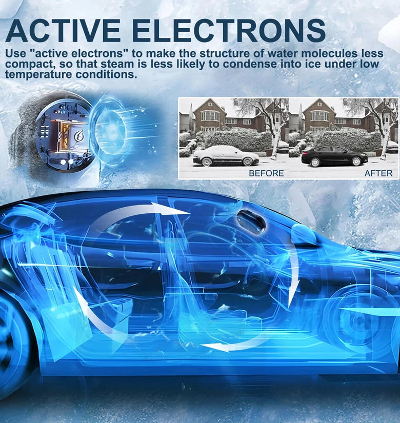 The innovative design eliminates the need for special chemicals or substances. Instead, it alters the physical properties of water molecules, enabling them to vibrate actively even at freezing temperatures, thereby preventing ice formation on car windows.