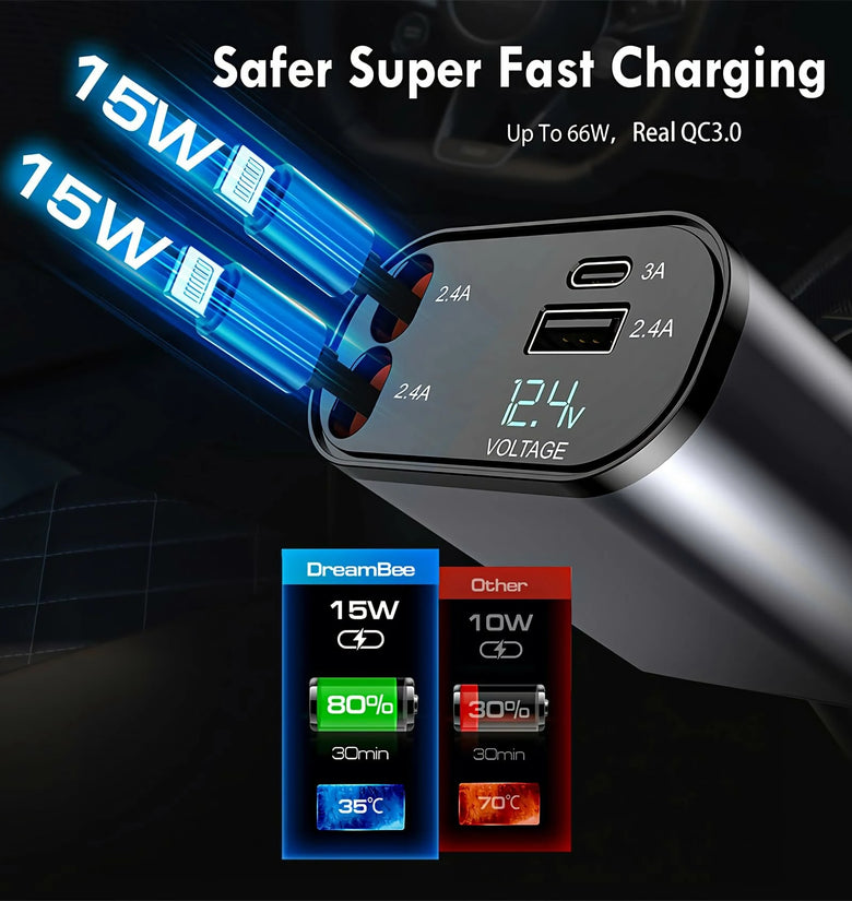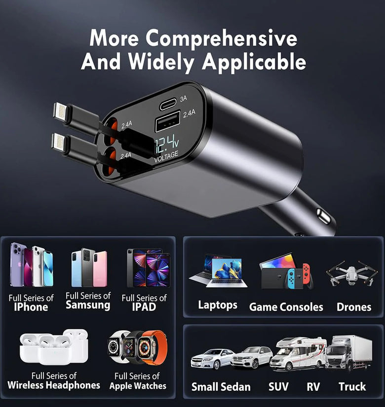 3. Reliable Design: Made of high-quality materials, this car charger is built to last and withstand everyday wear and tear.