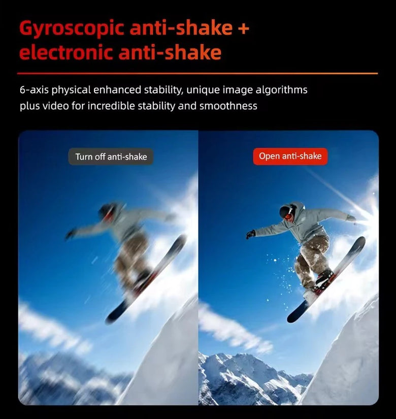 4. Advanced Dual Anti-Shake Technology: This feature minimizes motion blur and camera shake, enabling smooth and stable video recording, especially suitable for high-action sports and activities.