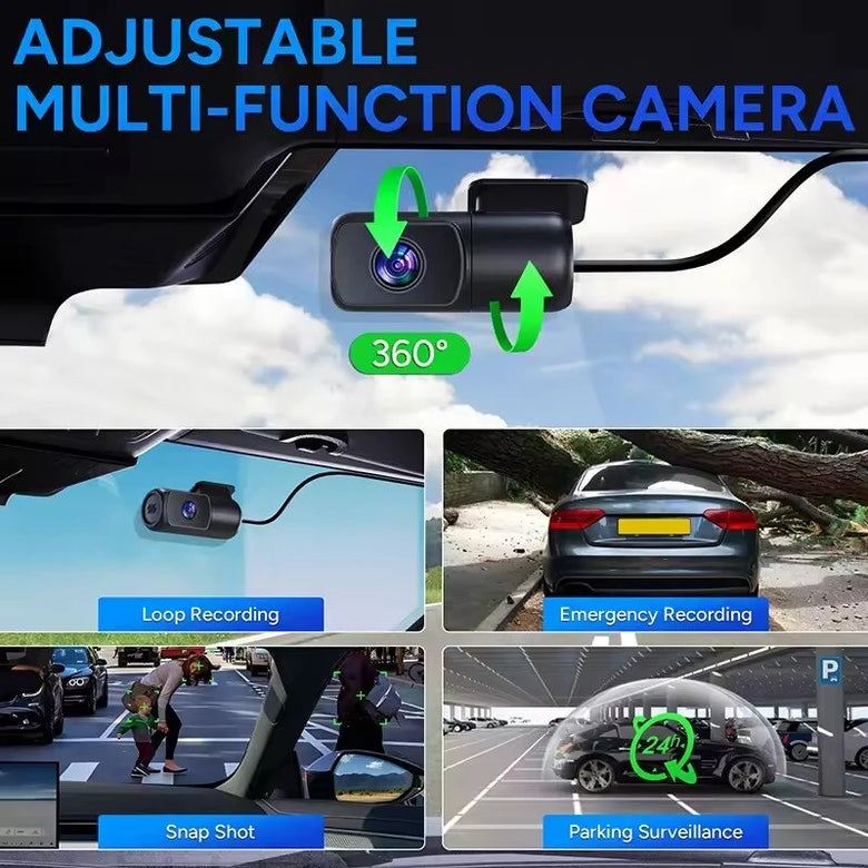 1. Simultaneous Multi-View: This innovative dashcam supports three-way simultaneous recording, featuring front, rear, and internal views. The picture-in-picture mode allows you to view these feeds simultaneously, enhancing situational awareness and safety.