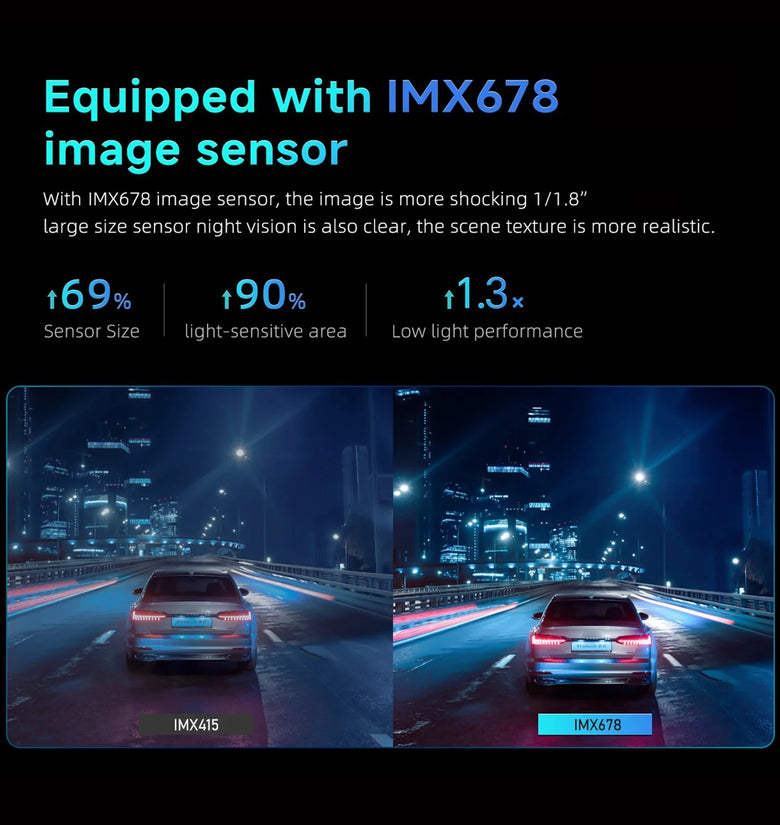 Featuring both 2.4GHz and 5GHz Wi-Fi bands, this dash cam ensures fast and stable wireless data transfer. Seamlessly connect to your mobile app to view, download, and share your footage anytime, anywhere.