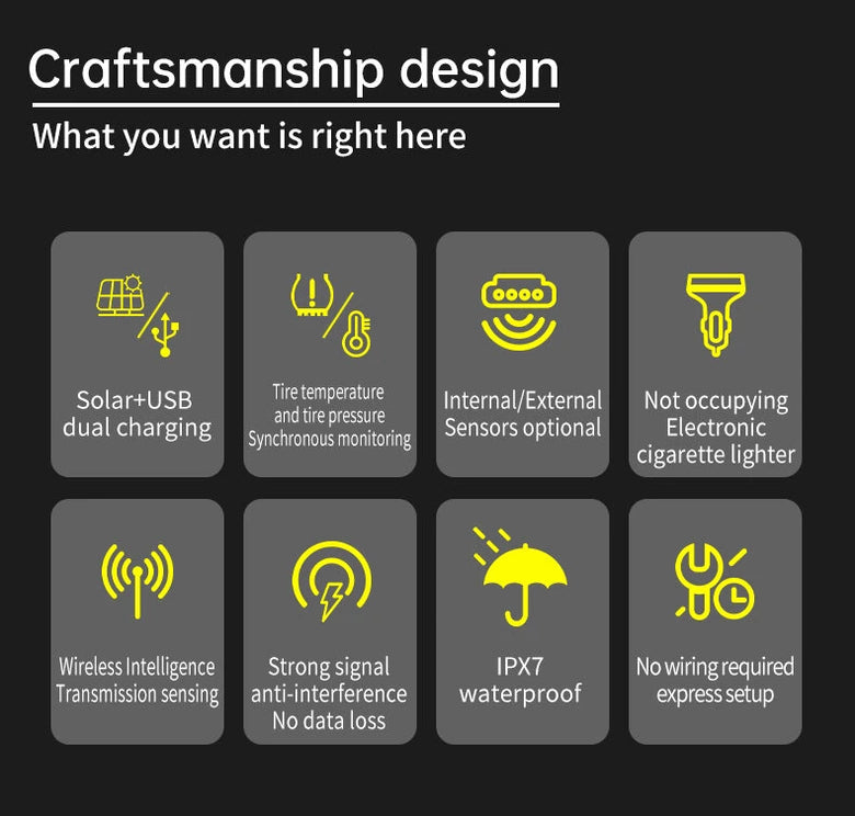 - Wireless & Easy Installation: Equipped with both internal and external wireless sensors, this monitoring system ensures easy installation without the need for complex wiring. This feature offers flexibility in various vehicle types and enhances user convenience.
