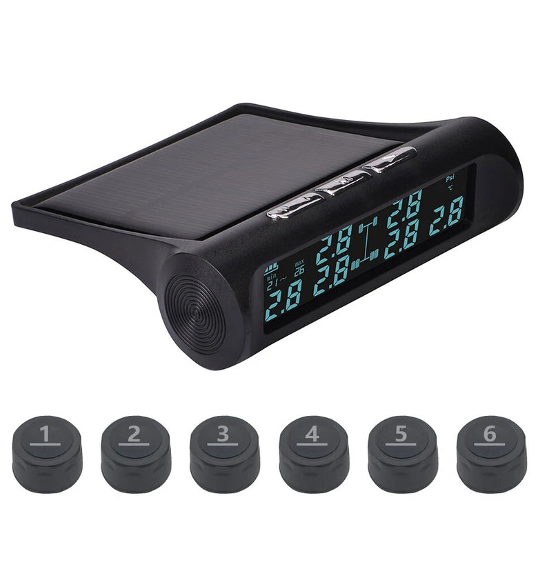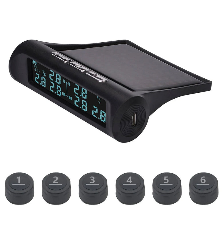 -- Dual Charging Modes - Solar and USB: Designed with the user's convenience in mind, the tire pressure monitor system for 6-wheel freight vehicles offers two charging options - solar and USB. This guarantees that your device will always have power and be ready to use, regardless of where you are or what the weather is like.