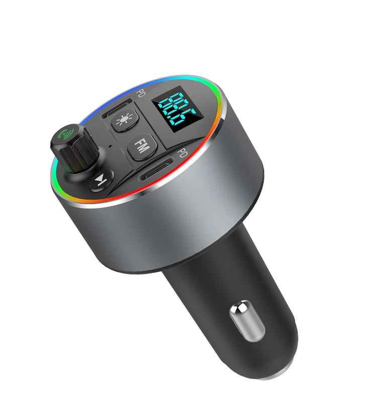 • T69 bluetooth V5.0 FM Transmitter Dual 20W PD Car Charger 9 Colors Backlit Light Digital Display Hands-free Calls Voice Control MP3 Music Player Car Kit