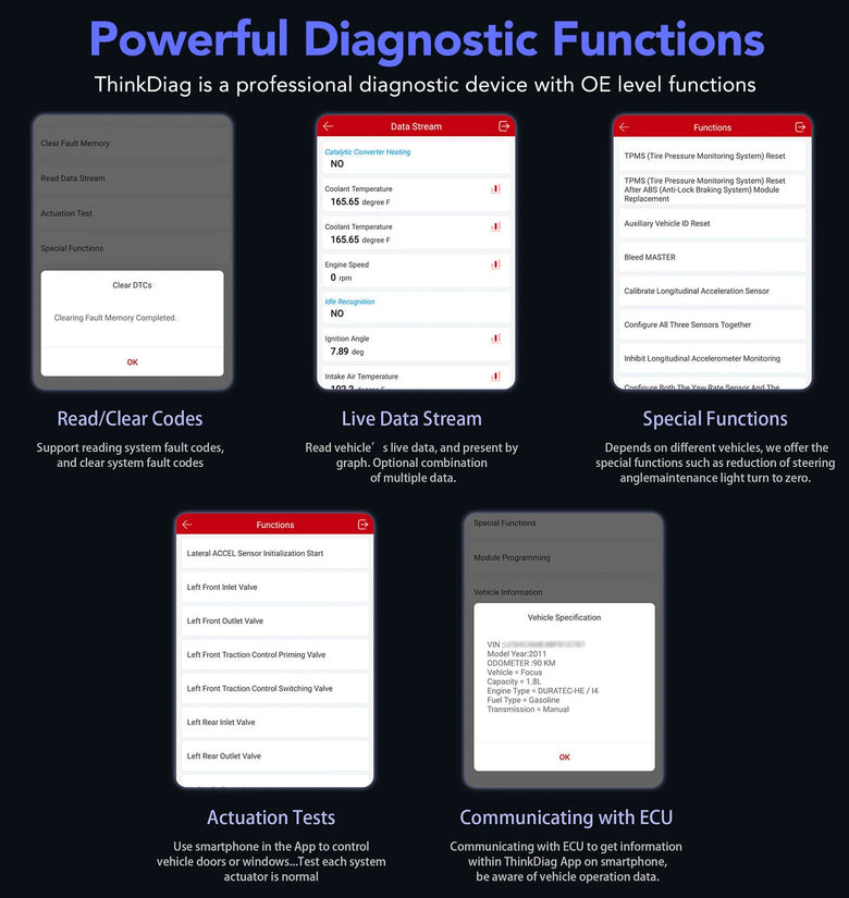 ThinkDiag is perfect to use with our unique app. Easy and practical, anytime, anywhere. Comprehensive functions include Diagnostic Module, ThinkStore Module, ThinkMoments Module, Me Module, etc.