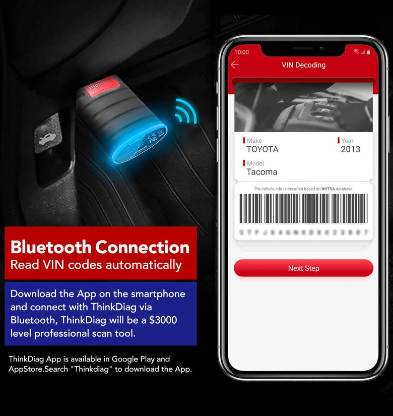 1.Download the app on smartphone and connect with ThinkDiag via Bluetooth, ThinkDiag will be a $3000 professional scan tool.