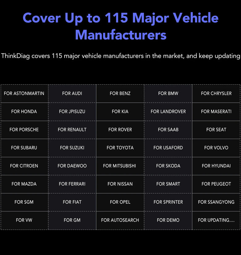Thinkdiag can diagnose the electronic control system of key vehicle models covering Asia, Europe, America and China. Full range car models and complete car diagnostic system make it a professional automotive diagnostic tool.