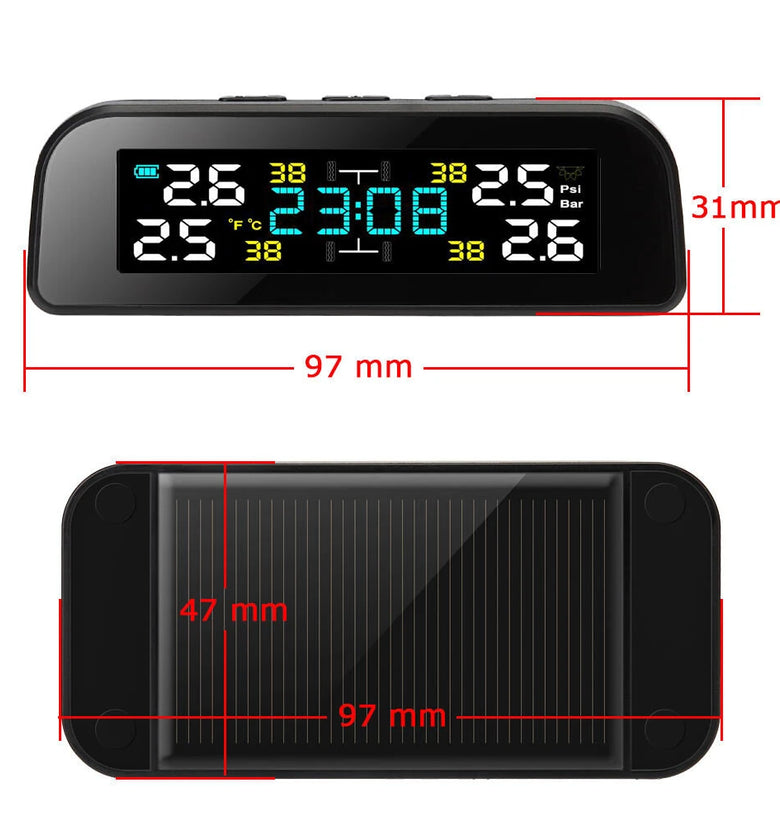 - Advanced Solar and USB Charging: Equipped with both solar and USB charging options, this TPMS ensures uninterrupted functionality. Harness solar energy for eco-friendly power or use the USB port for quick recharging, maintaining the device’s operational readiness at all times.
