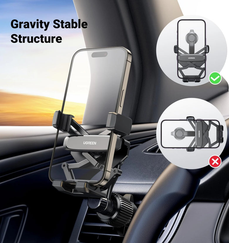 - Non-Blocking Design: The UGREEN car phone holder features a unique structure that ensures your vehicle's air vents remain unobstructed, providing uninterrupted airflow from your air conditioning system. This thoughtful design helps maintain comfort without interfering with your car’s climate control.