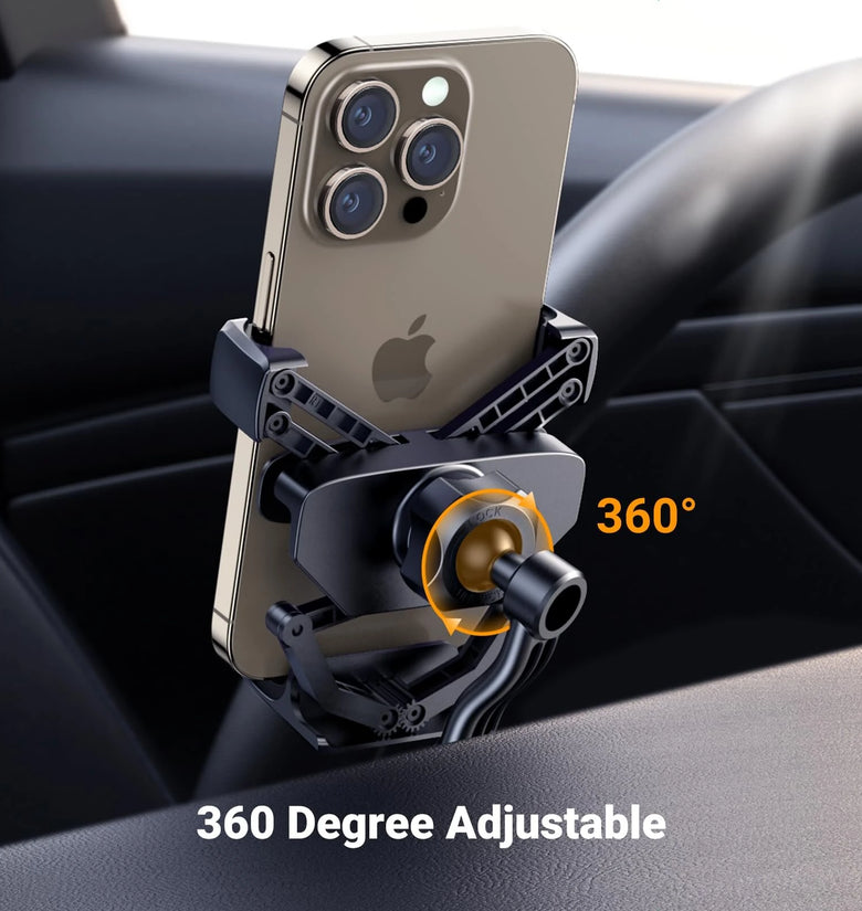 - 360° Adjustable Viewing: Equipped with a 360° rotating ball joint, this holder allows you to adjust your phone to any desired angle for optimal viewing. Whether for navigation, calls, or music, find the most comfortable and safe positioning effortlessly.