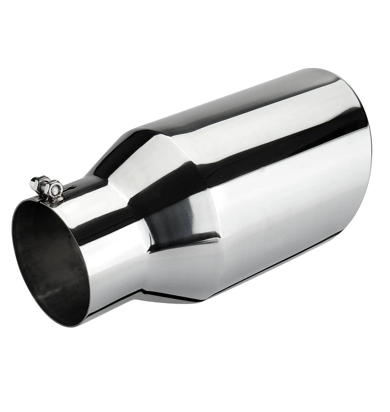 Stylish Angle Cut Design: The angle cut with rolled edge design not only adds a sleek and sporty look to your vehicle but also enhances the exhaust flow. This modern design element complement