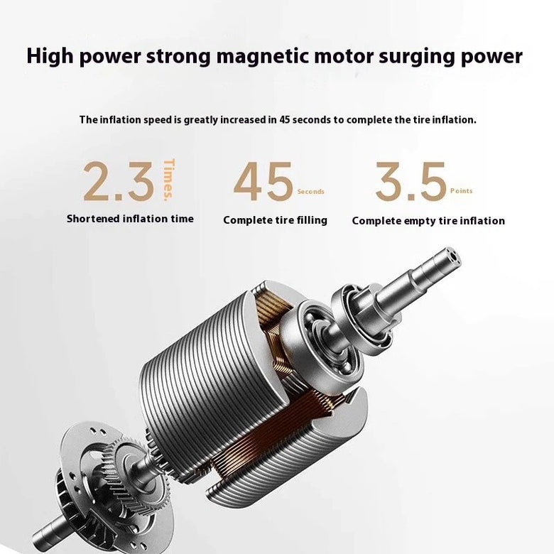 - Powerful Motor: Equipped with a high-performance magnetic motor delivering a consistent and reliable performance for various inflation tasks, improving inflation efficiency by up to 2.2 times.
