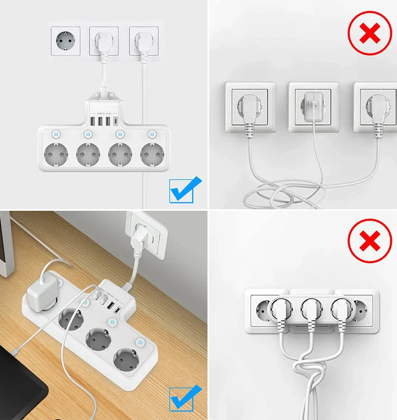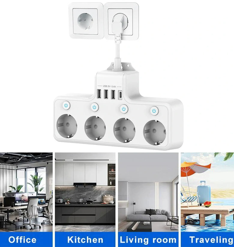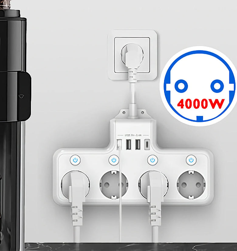 1. 4-Way Power Strip: This power strip features 4 individually switchable EU sockets, providing convenient access to multiple power sources.