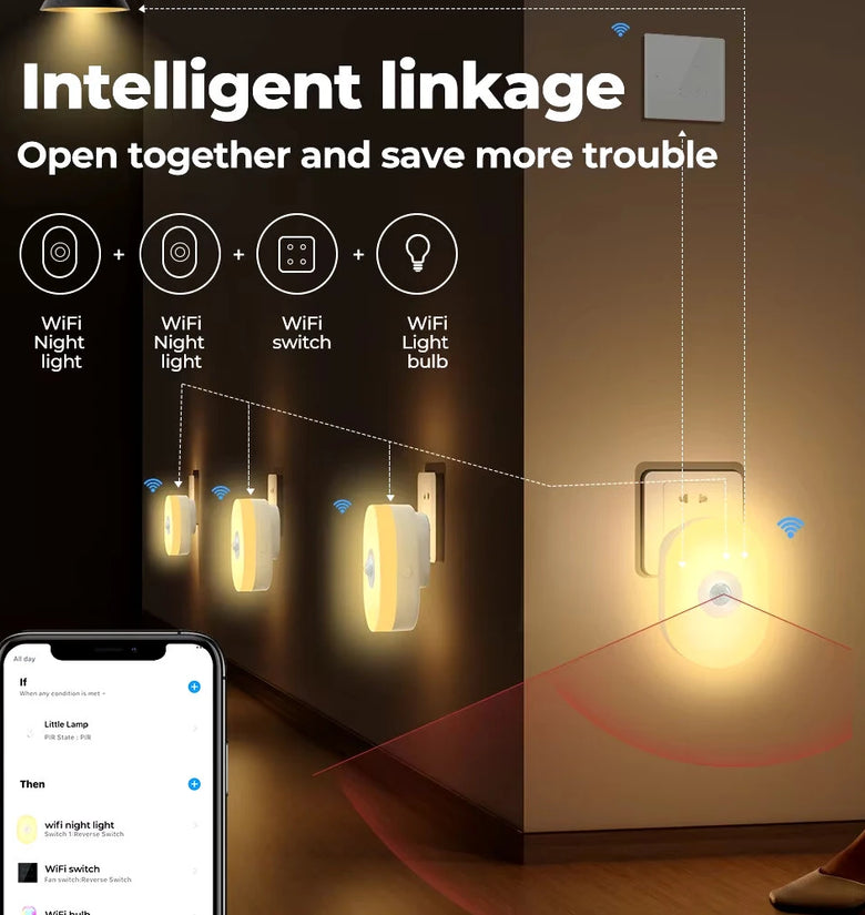 --【Motion sensing function】When people pass by, other sockets, bulbs, switches and other smart devices can be linked to work together
