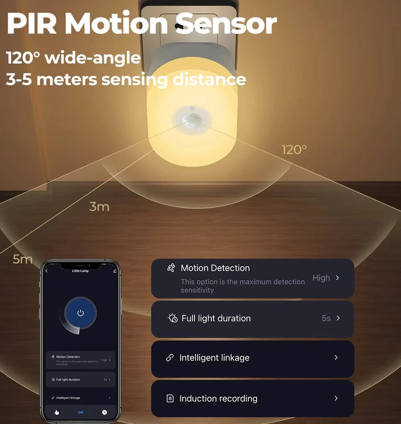 --【Always on time adjustment】 You can set the duration of the sensor night light after it is turned on in the App, such as 5 seconds, or turn it off after 10 seconds