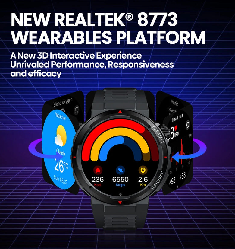 【A New 3D Interactive Experience】The Zeblaze Ares 3 Plus utilizes the REALTEK® 8773 wearables platform for unmatched performance, responsiveness, and power efficiency. The new 3D interactive experience seamlessly integrates health and fitness tracking.【1.43' HD AMOLED Display】At ultra-large 1.43' HD AMOLED the Zeblaze Ares 3 Plus display is enhanced in size, vibrancy, and resolution. Curved to look natural on your wrist, the screen is made from tempered glass covered with an anti-fingerprint coating. Enjoy a bigger screen and a smarter style.【Design Engineered for Action】Crafted to withstand the rigors of the great outdoors while exuding sophistication in everyday life, Zeblaze Ares 3 Plus is your ultimate companion for wild adventure and urban style.【Wellness Of Body& Mind】It’s the ultimate device for a healthier, more active life that can measure blood-oxygen saturation, monitor heart rate & abnormal heart rate warnings, stress levels & sleep tracking, and record female menstrual period.【Advanced Fitness Support】The Zeblaze Ares 3 Plus fitness watch has 100 plus sports modes, allowing you to get data for all your favorite sports, like walking, running, and cycling, as well as more freeform workouts like strength training, yoga, and more.【bluetooth Phone Calls】Support Offline Voice Assistant. The watch can receive and answer phone calls via Bluetooth connection to your phone.【Watch Faces That Paint a Portrait of Style】Match your mood, outfit, and occasion, with a wide selection of more than 100+ stylish watch faces, all of which have matching always-on display.【Ultimate Lifestyle Partner】Synchronize it with your phone get SMS/phone call/app notifications and control your phone's music playback/ camera, right on your wrist. The smartwatch will also offer Sedentary Reminders, Do Not Disturb, To-Do lists, and weather forecast functions, and enable setting alarms and stopwatches.【Power that Goes the Distance】This ultra-compact smartwatch packs a mega-powerful 280 mAh battery, bringing 14 days of endurance on typical usage and up to 30 days of battery life on battery saver mode.