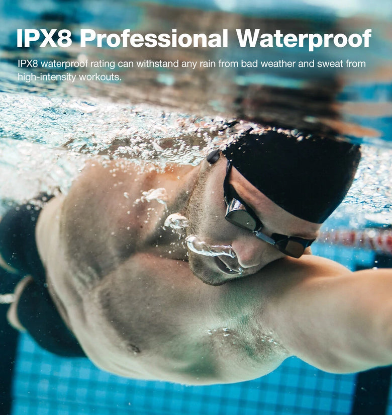 IPX8 waterproof rating can withstand any rain from bad weather and sweat from high-intensity workouts.