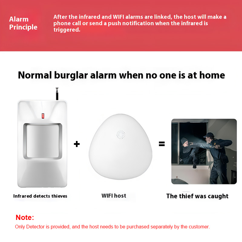 This infrared detector utilizes advanced 433MHz wireless technology to provide stable and long-distance communication. It ensures seamless connectivity without the need for additional wiring, making installation swift and unobtrusive.