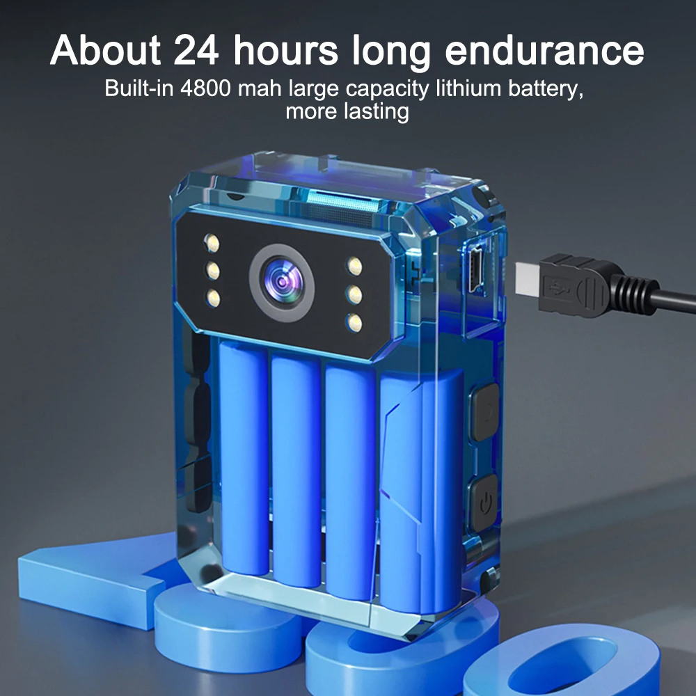 2.Extended Battery Life Featuring a 4800mAh rechargeable battery, this camera is capable of recording continuously for up to 24 hours on a single charge. This extended recording time is perfect for long-duration activities without needing frequent recharges.