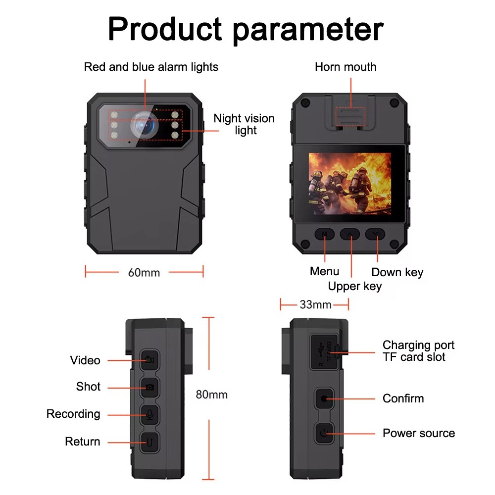 3.Versatile Recording Functions This wearable camera supports multiple functions including video, audio, photo, and playback. It also offers features like motion detection, infrared night vision, loop recording, and pre-recording, ensuring that you have a comprehensive recording tool at your disposal.