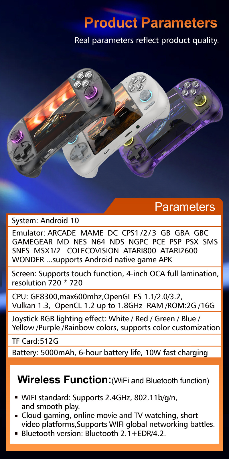 4. Two-Player Wireless Mode: Supports multiplayer gaming and online battles via Wi-Fi and bluetooth.