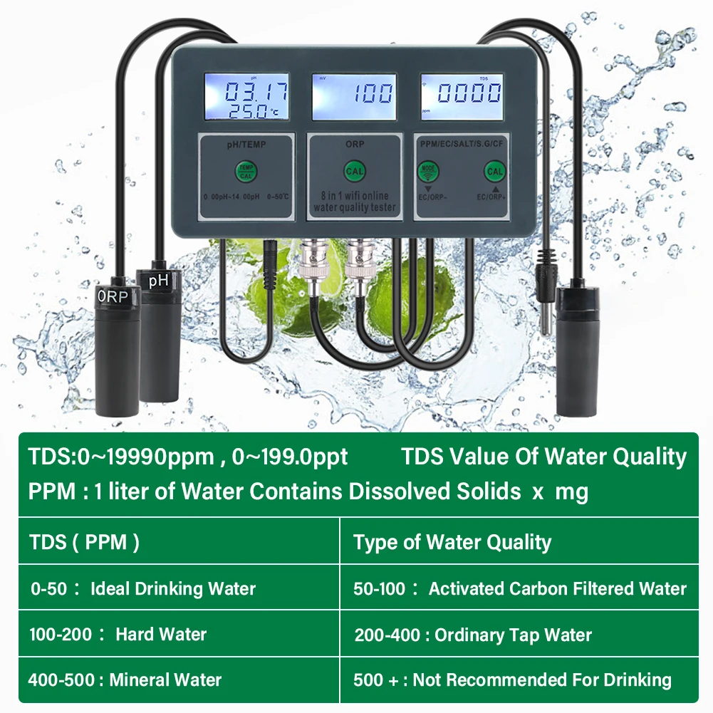 1. 8 in 1 Water Quality Tester: