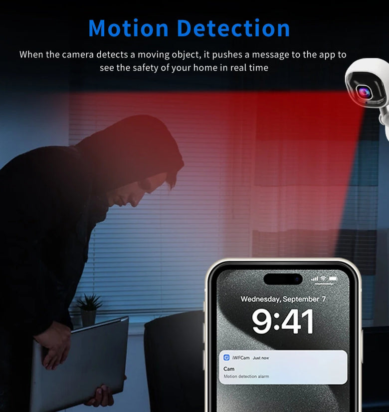 The infrared night vision mode provides clear imaging in low-light conditions. With an illumination range of 5 to 10 meters, the camera captures detailed video footage even in complete darkness, ensuring continuous surveillance 24/7.