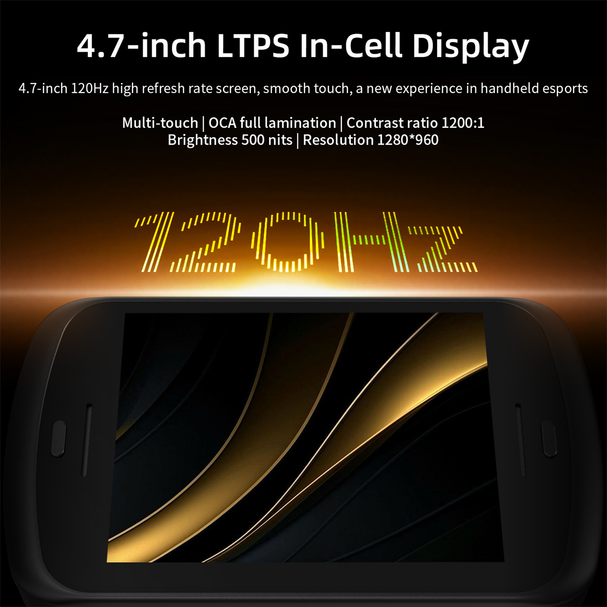 Screen: 4.7-inch LTPS In-Cell display, OCA full lamination, multi-touch, 1280×960 resolution, supports a maximum refresh rate of 120Hz