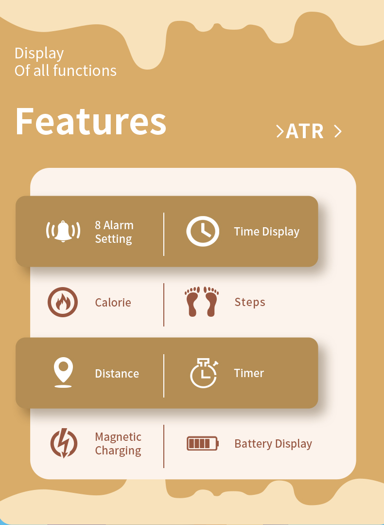 • ATRSmart Counting Watch with Countdown Timer Pedometer 8 Alarms IP67 Waterproof Magnetic Charging Fitness Tracker Health Monitor LED Display Smart Bracelet
