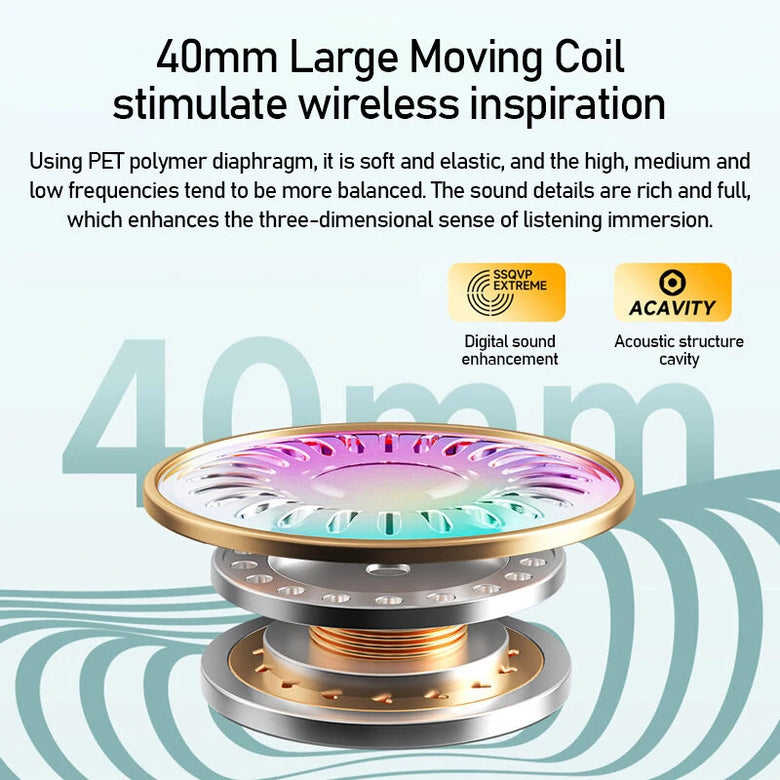 2. 40mm Large Speaker: Exceptional sound quality delivered by a 40mm speaker. The high, medium, and low frequency are more balanced, enhancing the three-dimensional sense of hearing.