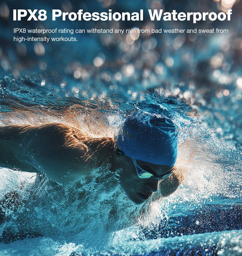 IPX8 waterproof rating can withstand any rain from bad weather and sweat from high-intensity workouts.