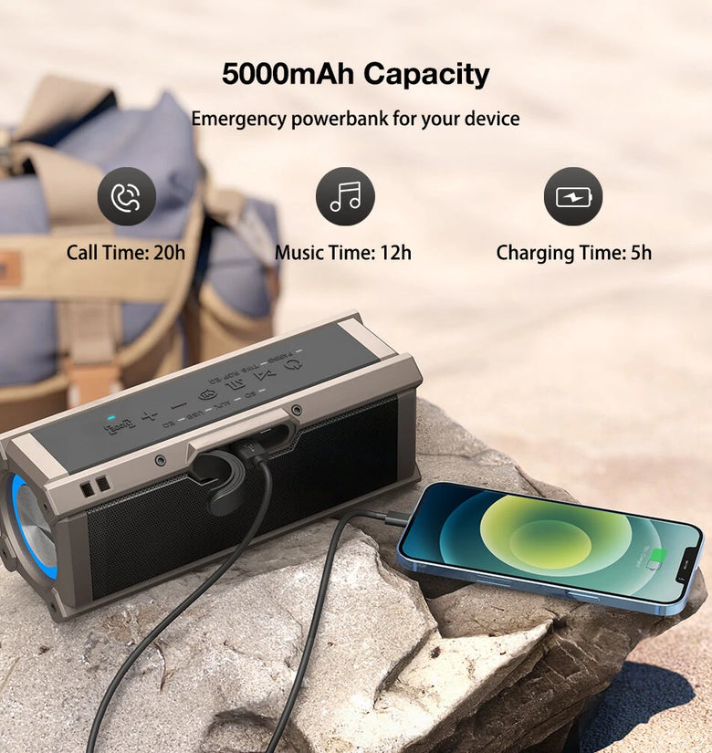 3. 5000mAh Long Endurance-- Long battery life and Support USB Emergency Charging, long enough for any outdoor activities. Wireless portable bluetooth speakers should be a must have in your life.
