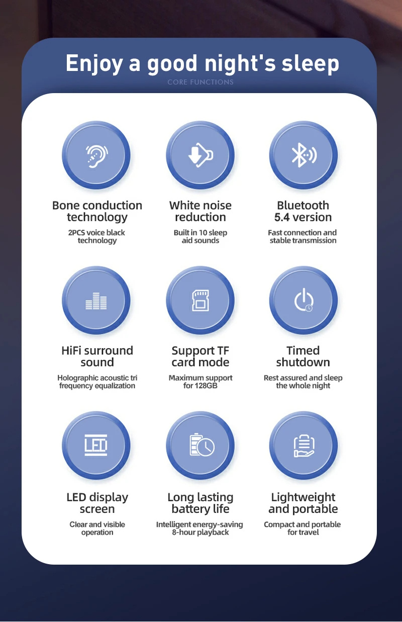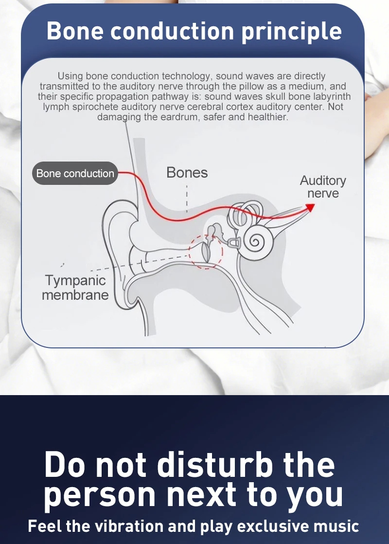1. Bone Conduction Technology: Sound waves are transmitted directly to the auditory nerves through the pillow without disturbing others.