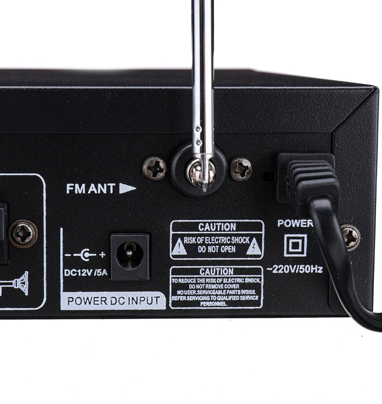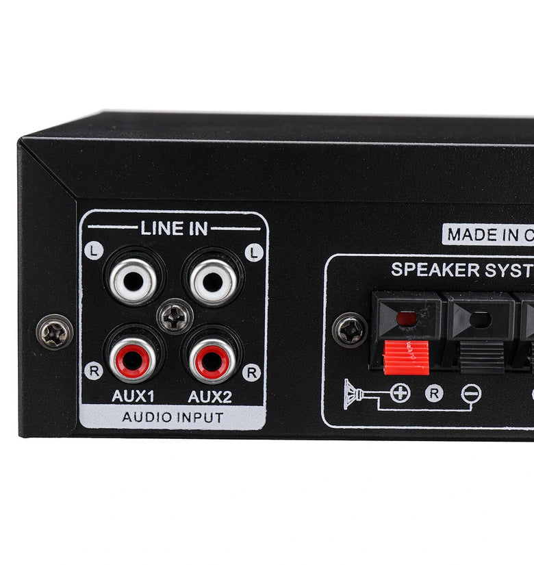 4. Microphone Support: This amplifier is equipped with dual microphone inputs, allowing you to host karaoke sessions or make announcements at gatherings, parties, or events.