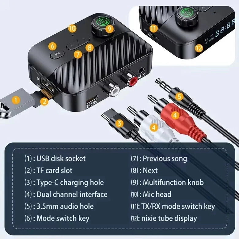 3. Two Modes (TX & RX): Supports both transmission mode (e.g., TV to wireless headphones) and reception mode (e.g., phone to wired speakers).