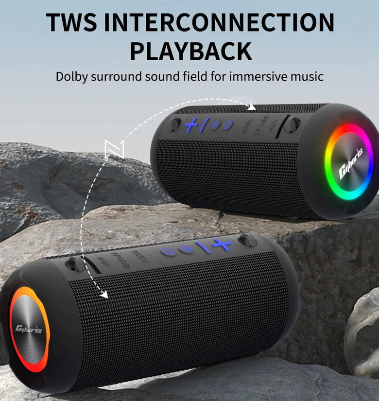 • Cyboris S9 20W bluetooth Speaker Portable Speaker Dual 57mm Bass Diaphragm RGB Light TWS Hands-free Call IPX6 Waterproof Support AUX TF Card U Disk Outdoors Wireless Subwoofer