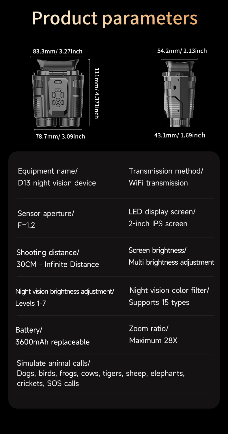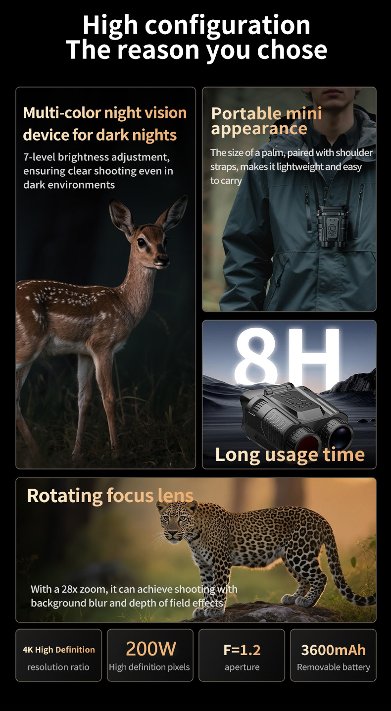• D13 4K Night Vision Goggles 2MP HD 28X Zoom Infrared Night Vision WiFi Transmission 3600mAh Battery for Outdoor Wildlife Observation
