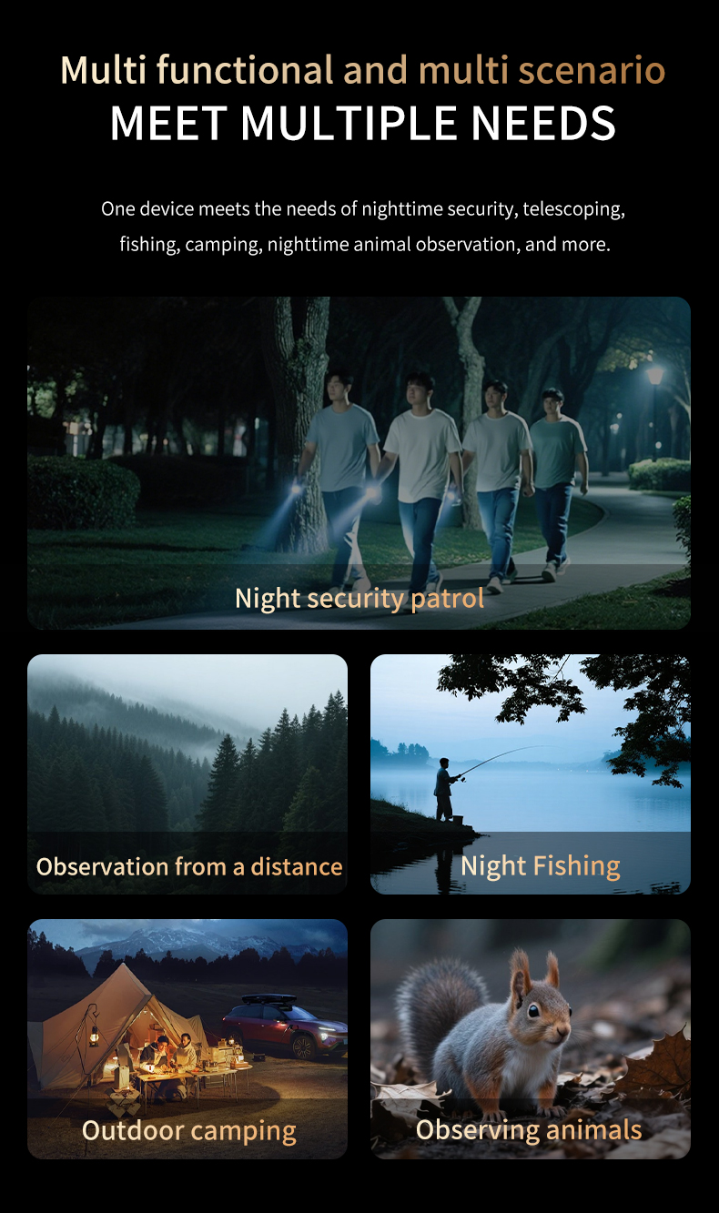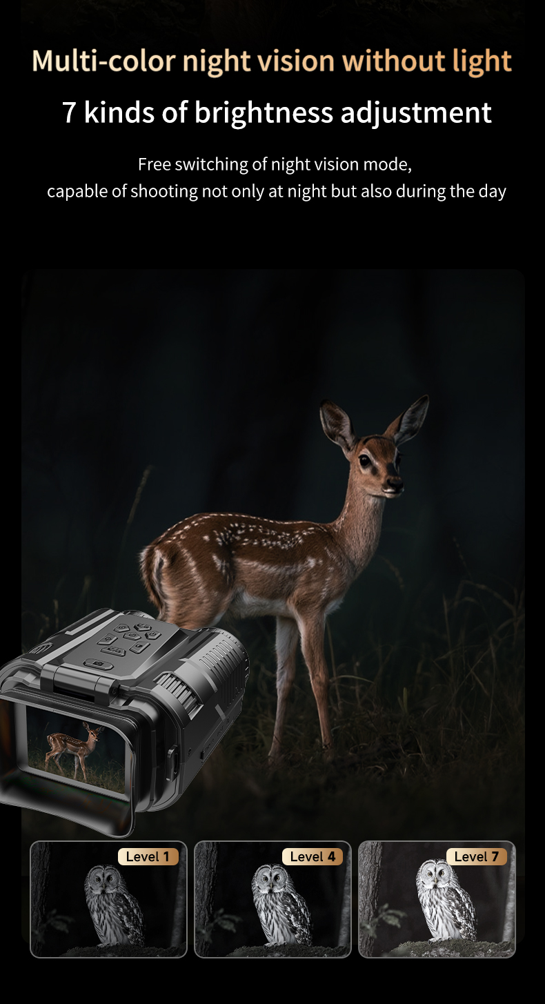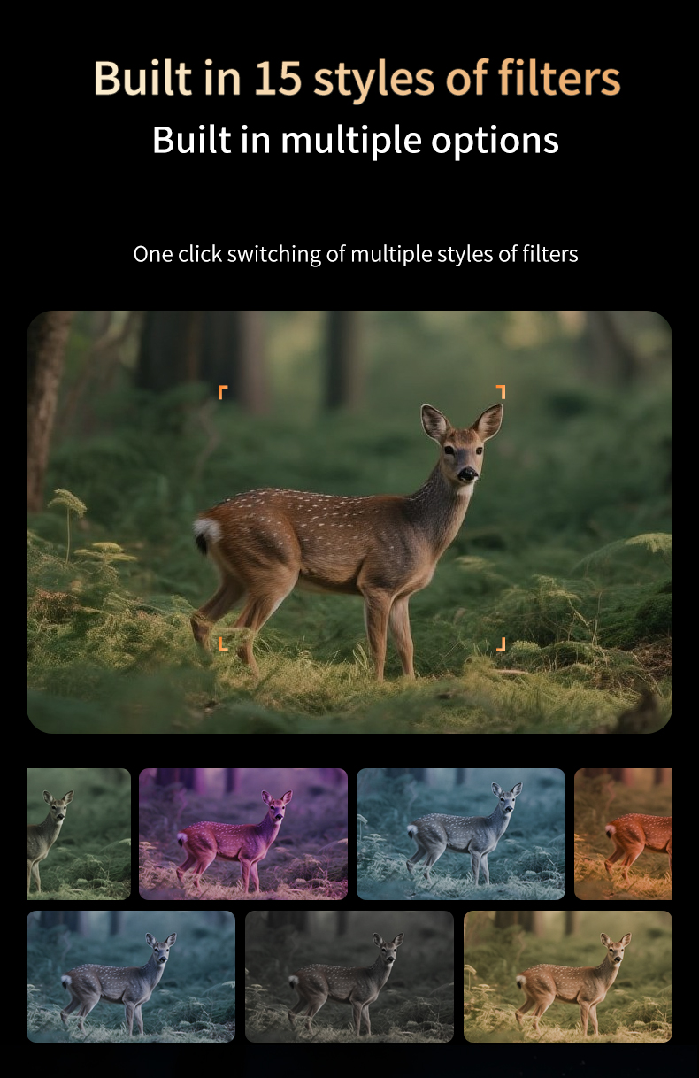 2. Multi-Color and Infrared Night Vision: Supports 15 color filters with 7-level brightness adjustment for enhanced visibility in darkness.