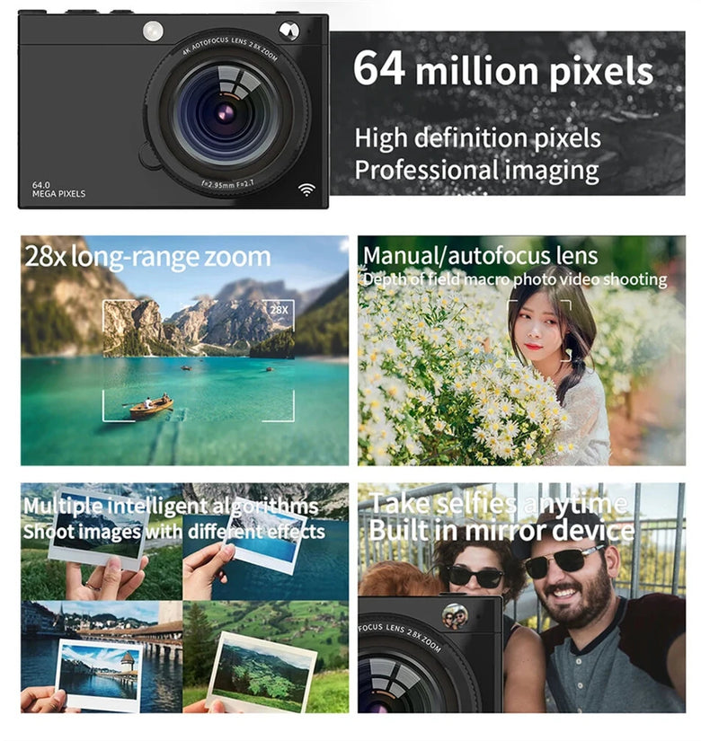 1. 4K Recording Resolution: Capture every moment in stunning 4K resolution, ensuring your photos and videos are clear and detailed. With a maximum of 64 million pixels, your images will have exceptional clarity, making this camera perfect for high-quality photography and videography.