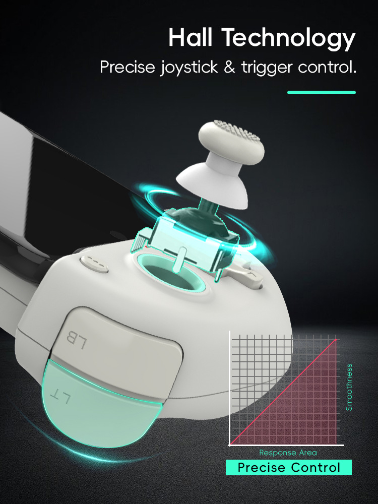 2. Precise Hall Technology: Advanced Hall Joystick and Trigger for accurate directional control and smooth input responsiveness.
