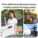 4. Multi-Lens Camera System: Includes an autofocus lens, a wide-angle lens, and a telephoto lens for diverse shooting modes.