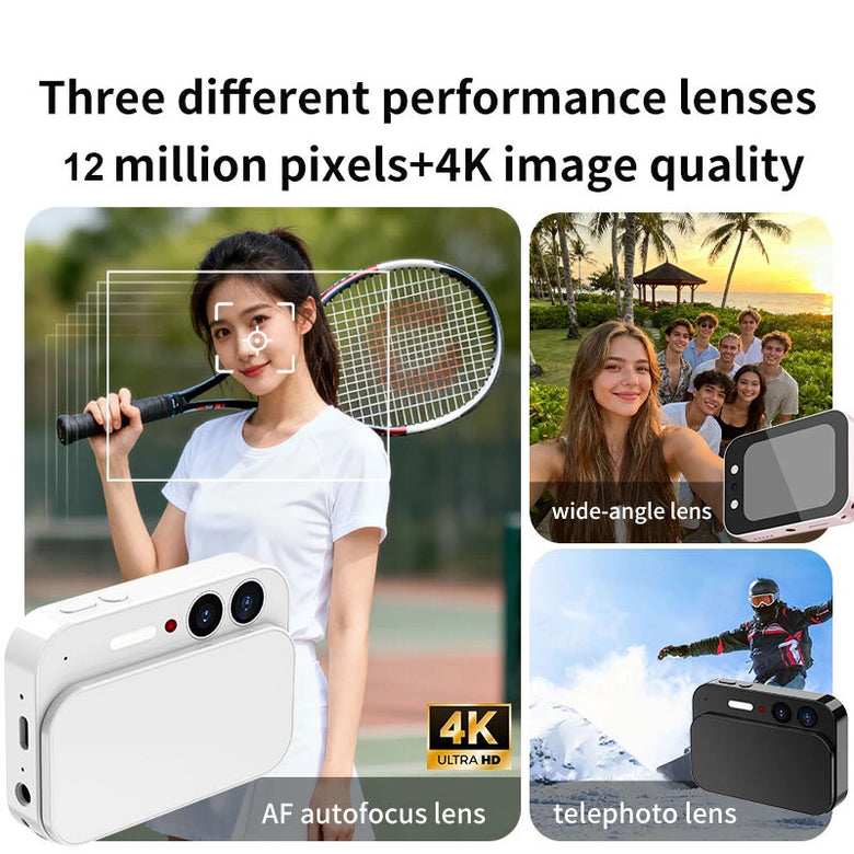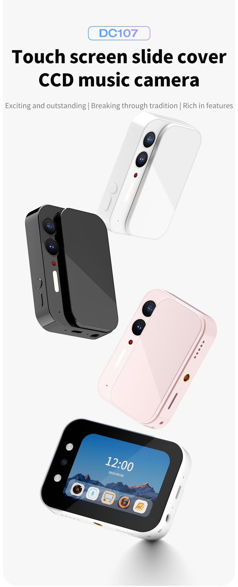DC107 CCD 12MP HD Sliding Cover Digital Camera 4K Video Recording 2.8 Inch Touch Screen Beauty Selfie 3600mAh Battery OTG Triple Lens Camera System